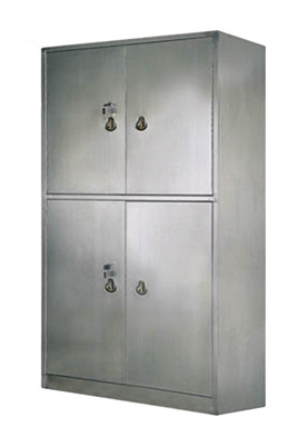 不锈钢剧毒柜经剪板,折弯,冲压,点焊,除油,喷塑,高温烘干,安装,包装九工位处理而成,特点如下;